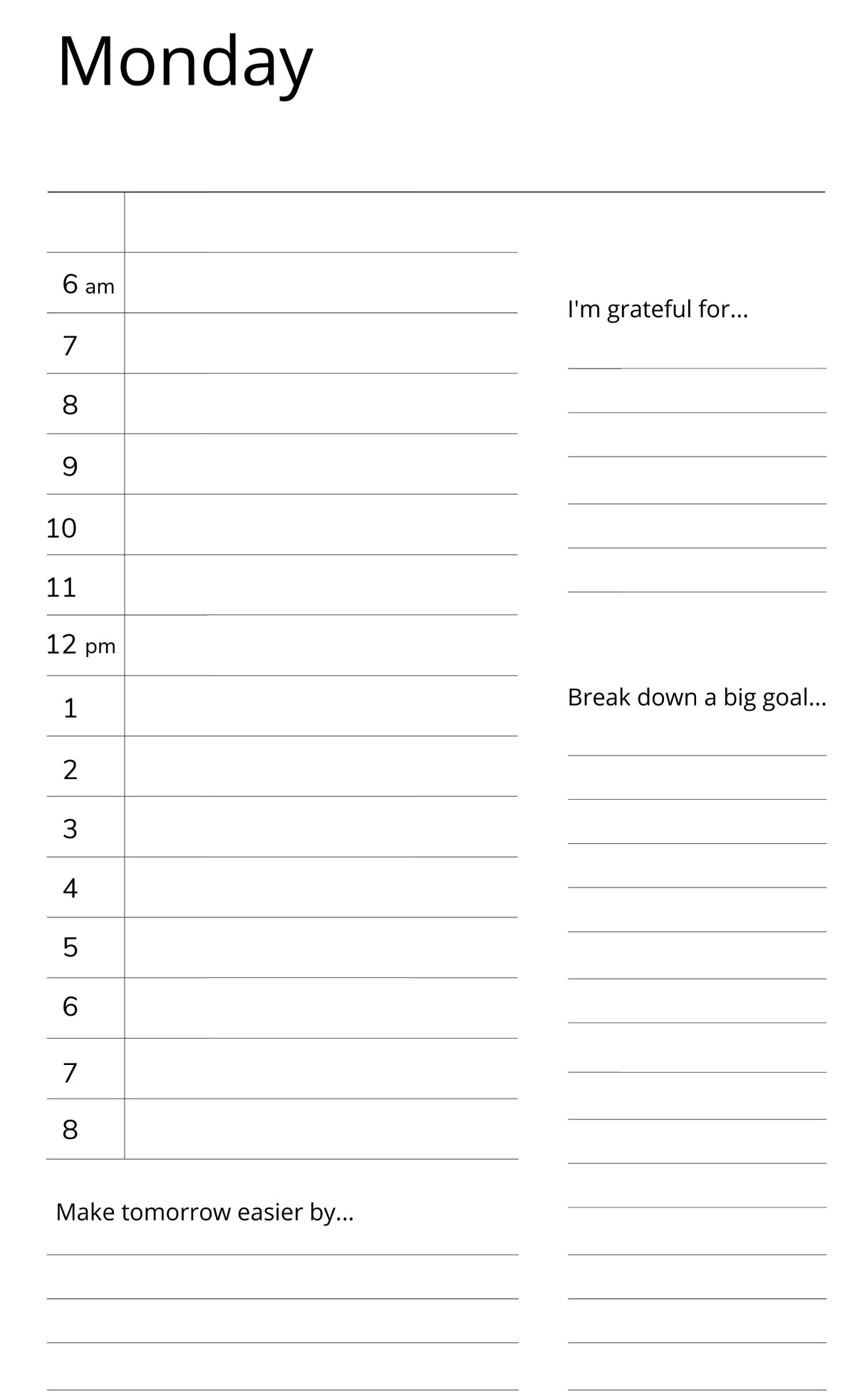 - Keep track of life with each day broken into hourly segments from 6am to 8pm